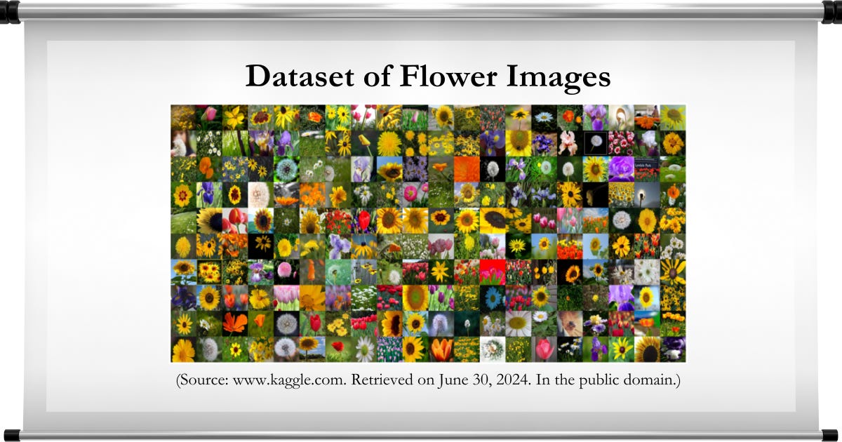 Here is a picture of a sample dataset of flower images that an AI model might learn from: